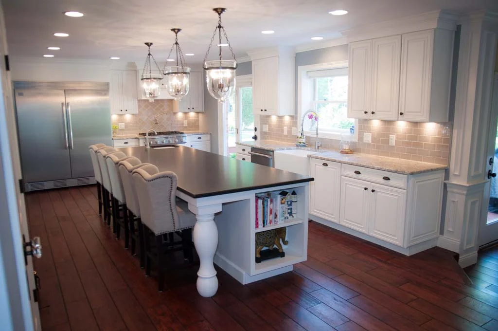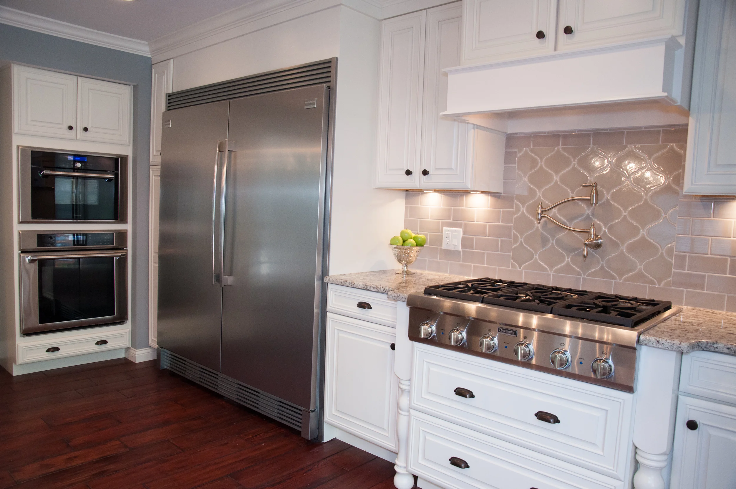 Omega Custom Cabinets, White Granite tops, 48" Chefs Range, Custom Hood, Refinished Hardwood Floors, Farm Sink, New Anderson windows, Wood Appliance panels.